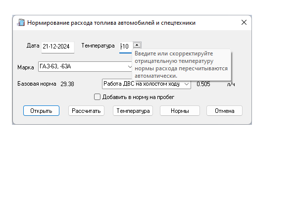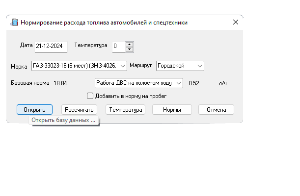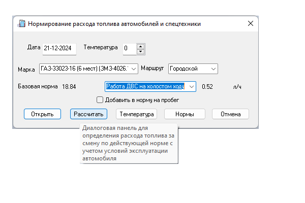 Рис. 5. Кнопка расчета нормативного расхода топлива автомобилем